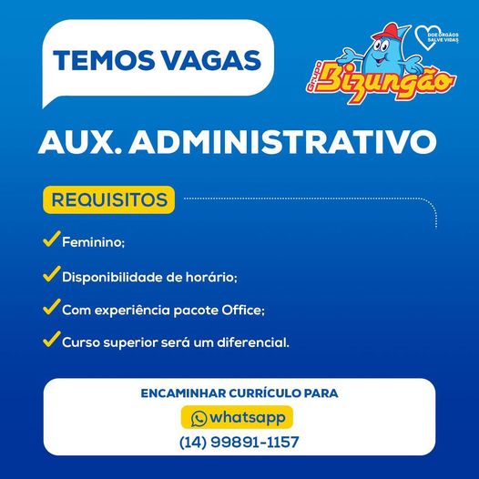 Interior de São Paulo ‼️ATENÇÃO, TEMOS VAGAS DE EMPREGO‼️ 4 de dezembro de 2023 Paulista FM SP 1264 visualizações ‼️ATENÇÃO, TEMOS VAGAS DE EMPREGO‼️ 0 min read ‼️ATENÇÃO, TEMOS VAGAS DE EMPREGO‼️ ?Cargo: Auxiliar Administrativo Confira nossos requisitos, encaminhe-nos seu currículo e venha fazer parte do Grupo Bizungão! Share this… Facebook Pinterest Twitter Linkedin