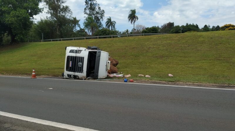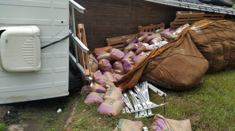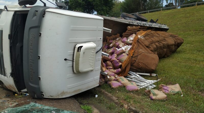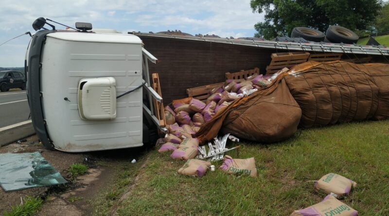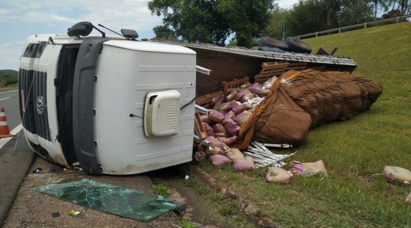 a carreta carregada de amido de milho se acidentou próximo da cidade de Torre de Pedra /SP na altura do km 174 Rodovia Castelo Branco sentido Interior Torre de Pedra a São Paulo.