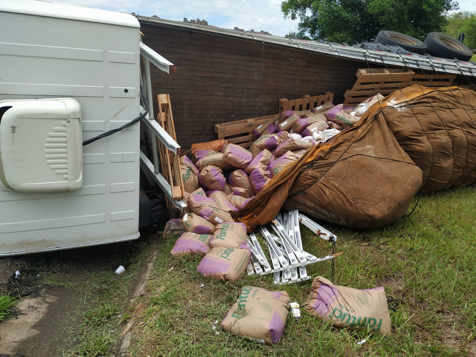 fazer exames em um hospital de Botucatu, a carga da carreta ficou espalhada por