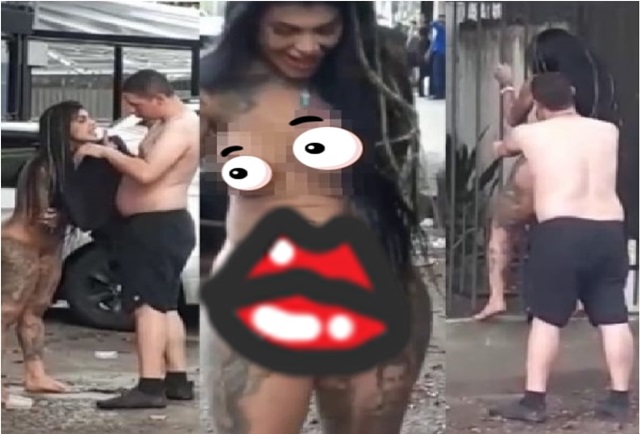 As imagens mostram uma mulher de bumbum gigante, bêbada e completamente nua, dando um “show” em plena rua, e à luz do dia, sem se importar com as pessoas que passam pelo local.