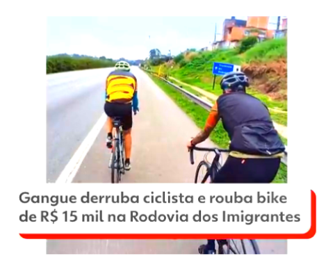 Mais de cinco pessoas pularam guard rail e invadiram pista na altura do km 18 da Rodovia dos Imigrantes para assaltar grupo de ciclistas no domingo (25) em Diadema. Esposa do dono da bicicleta roubada criou ‘vaquinha’ na internet para poder comprar outra. ‘Sensação de impotência’, diz ciclista.
