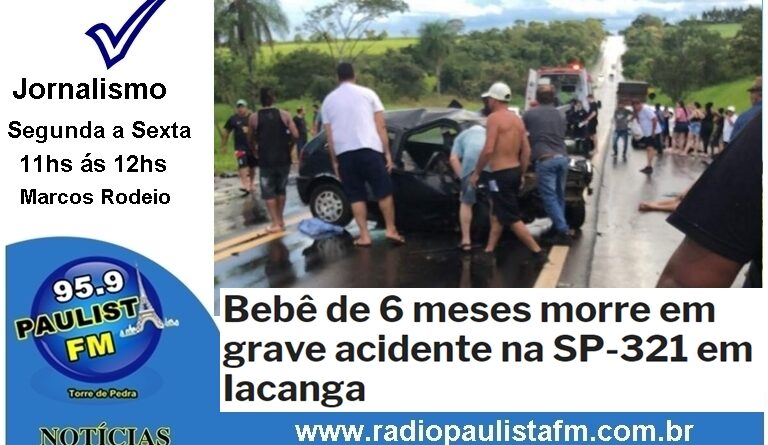 Interior de São Paulo 6 de fevereiro de 2023 Paulista FM SP Bebê de 6 meses morre em grave acidente na SP-321 em Iacanga Outras quatro pessoas tiveram ferimentos graves; colisão entre dois carros foi registrada na tarde deste domingo (05). Share this… Facebook Share this... Facebook Pinterest Twitter Linkedin Read More