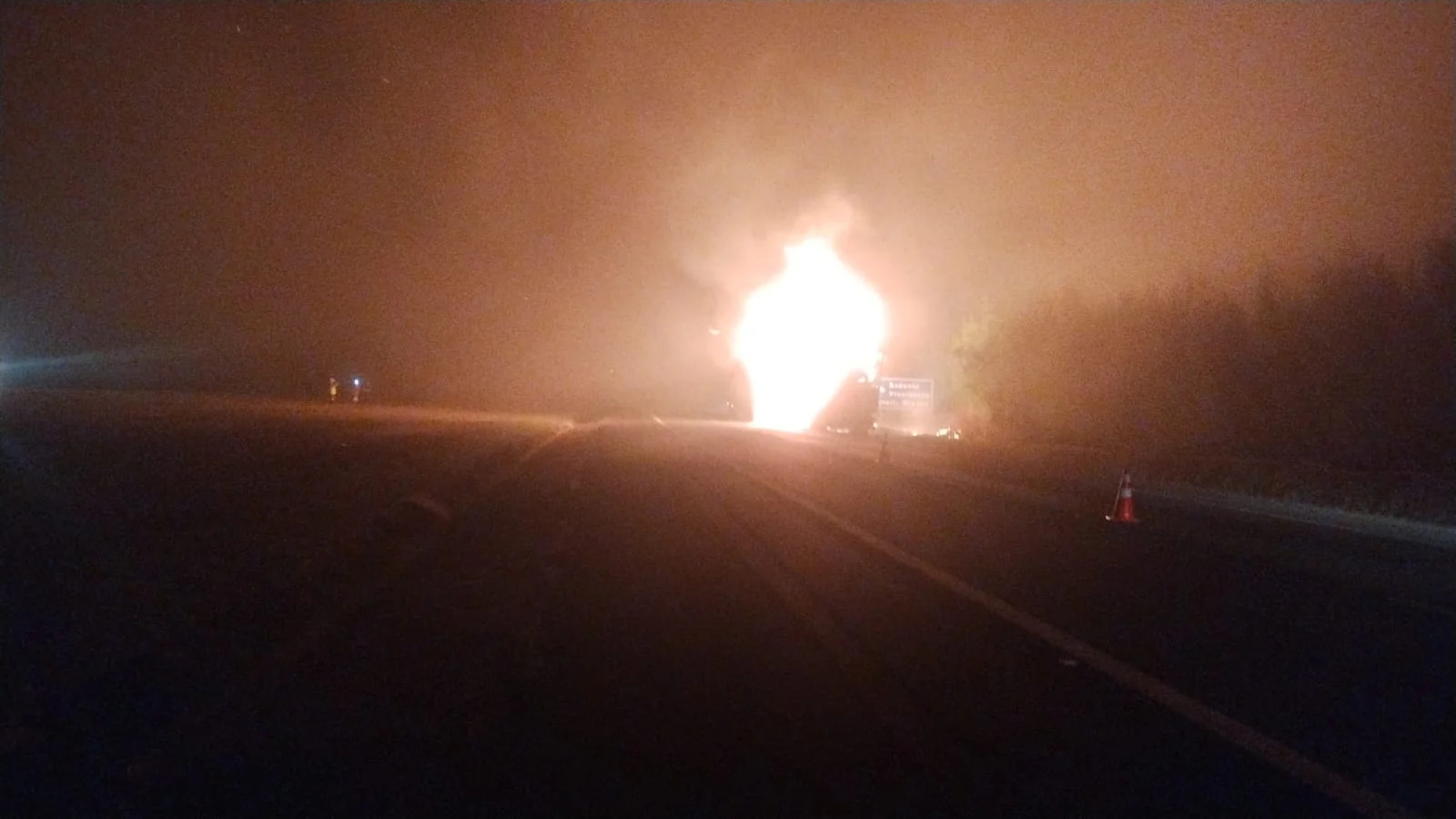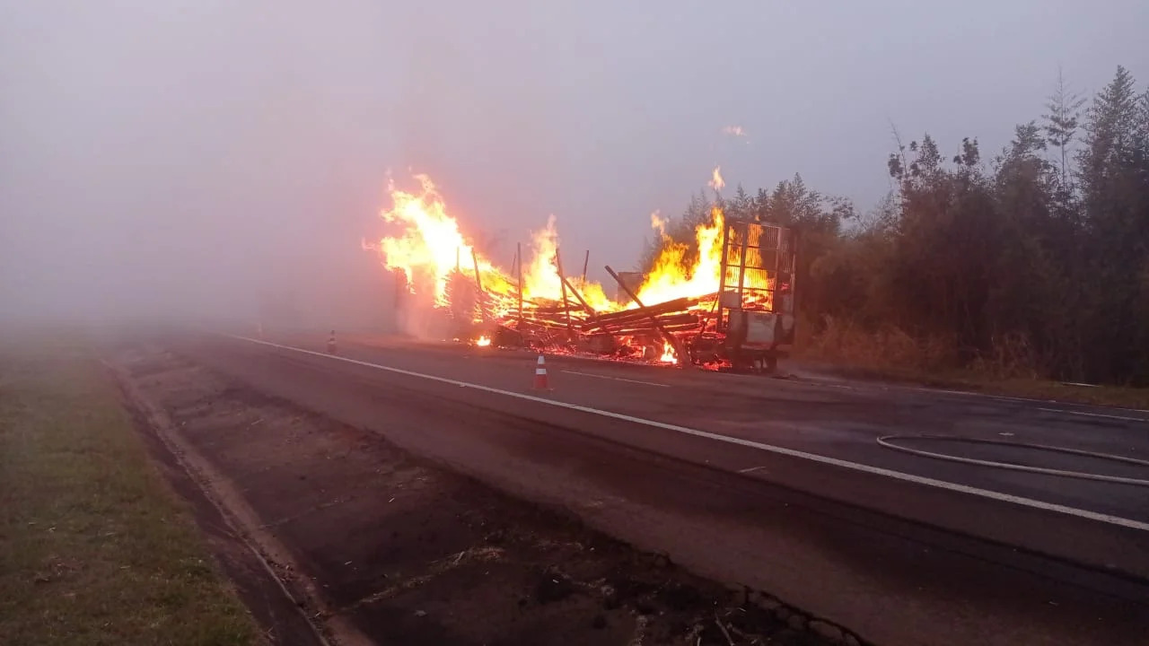 Segundo relatado, um dos pneus da carreta estourou e a lona que cobria a carga enroscou. Houve a propagação das chamas pela carga. O motorista conseguiu sair do veículo antes de possíveis explosões.