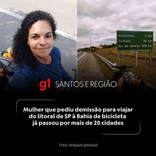 A moradora de Guarujá, no litoral de São Paulo, que está viajando de bicicleta rumo à Bahia, já passou por mais de 20 cidades em menos de um mês. Após pedir demissão dos dois empregos, Elza Pereira de Lima, de 34 anos, iniciou a trajetória com destino à Chapada Diamantina (BA) em 1º de outubro. Na última atualização ao g1, ela contou que estava no estado de Minas Gerais.