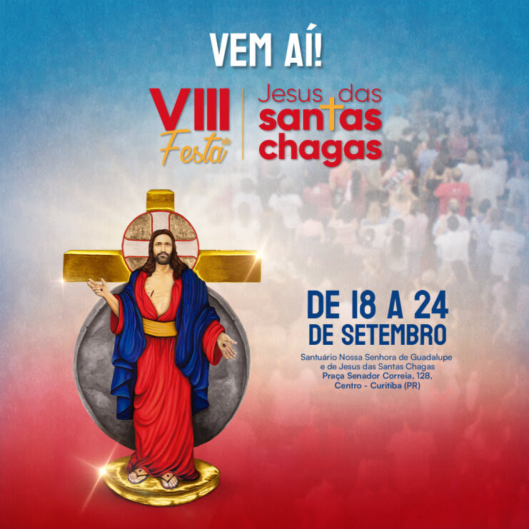 A devoção a Jesus das Santas Chagas será celebrada pela Associação Evangelizar É Preciso no Santuário Nossa Senhora de Guadalupe e de Jesus das Santas Chagas, em Curitiba (PR).