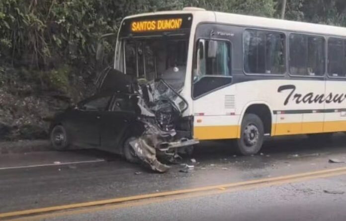 Acidente entre carro e ônibus na BR-040/MG deixa um morto, em Ewbank da Câmara