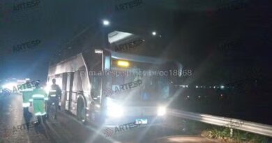 Ao tentar desviar, o condutor do caminhão perdeu o controle e colidiu lateralmente com uma carreta. Em sequência, o veículo também bateu na proteção metálica e colidiu lateralmente com outra carreta. O impacto fez com que uma das carretas fosse consumida pelas chamas.