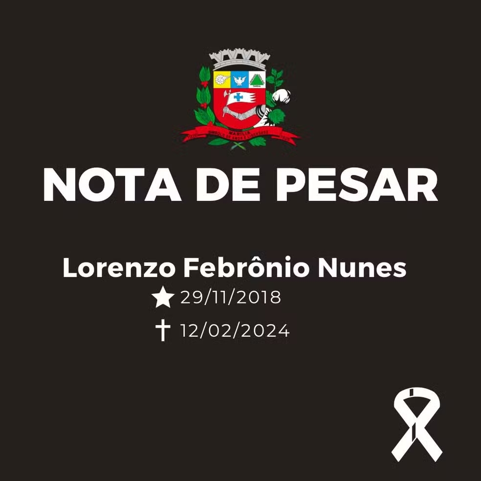 Em nota, o município lamentou o assassinato de Lorenzo, que era aluno da Escola Municipal de Educação Infantil (Emei) “Amor Perfeito”, localizada no distrito de Lácio, e prestou condolências à família.