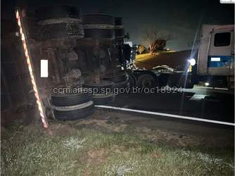 Araçariguama-SP carreta com carga de areia tomba na rodovia.
