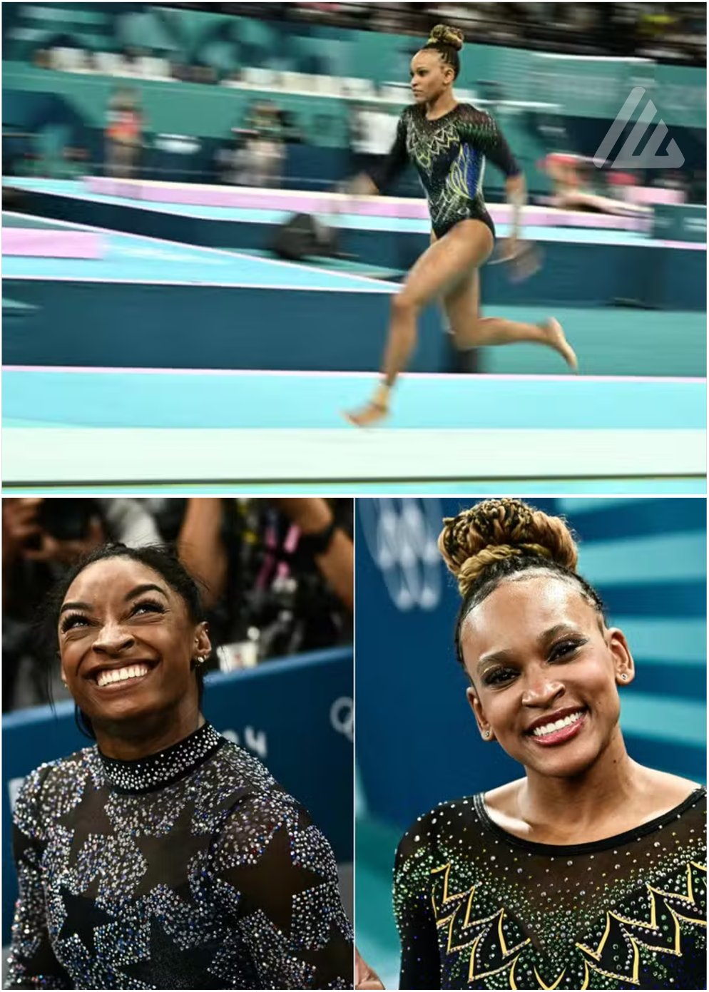 AS MAIORES! Simone Biles e Rebeca Andrade, duas das principais ginastas da atualidade e as maiores candidatas a ouros da ginástica artística nos Jogos Olímpicos de Paris. Apesar da concorrência no tablado, a brasileira e a americana sempre demonstram torcer uma pela outra durante as competições.