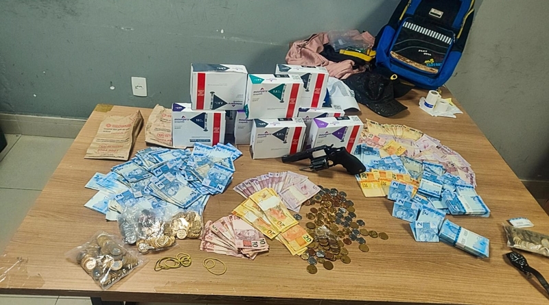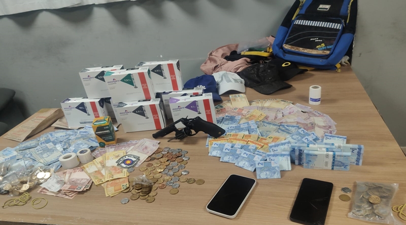 Com os assaltantes a polícia recuperou vários produtos que foram roubados, varias caixa de canetas emagrecedoras e outros itens, e uma quantidade dinheiro em espécie