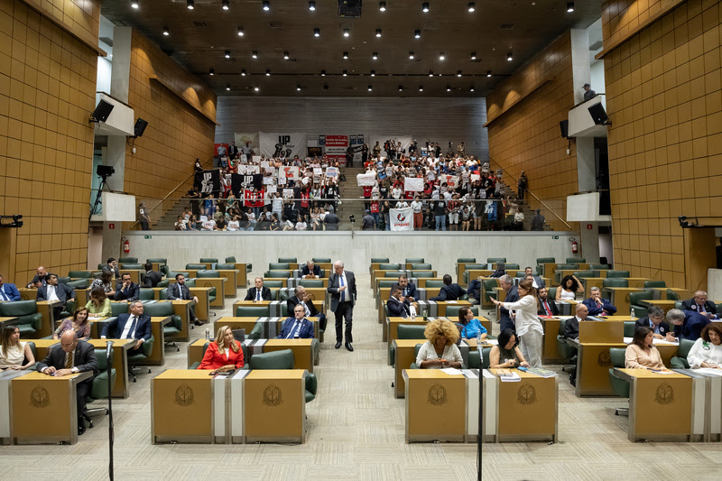 Durante a última sessão realizada nesta quarta-feira (6), a votação chegou a ser suspensa e a galeria esvaziada, após uma parte dos manifestantes comprometer a segurança e entrar em confronto com a Polícia Militar. A discussão da proposta foi retomada após o restabelecimento da ordem.