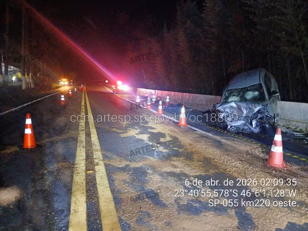 De acordo com a Secretaria de Segurança Pública do estado de São Paulo (SSP), o motorista de um dos veículos seguia no sentido Bertioga quando dormiu no voltante, invadiu a pista contrária e colidiu com o outro carro. A ocorrência foi registrada por volta de 0h25.