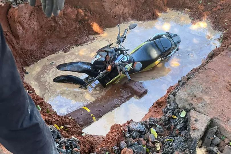 Um motociclista que entregava marmitas caiu dentro de uma grande cratera na quadra 8 da rua Primeiro de Maio, no Bela Vista, em Bauru. A queda o deixou insconsciente e, por isso, quase se afogou na água acumulada no fundo do buraco. No entanto, o homem foi resgatado a tempo por populares que viram o acidente. O caso aconteceu na segunda-feira, 13 de maio, por volta das 13h.