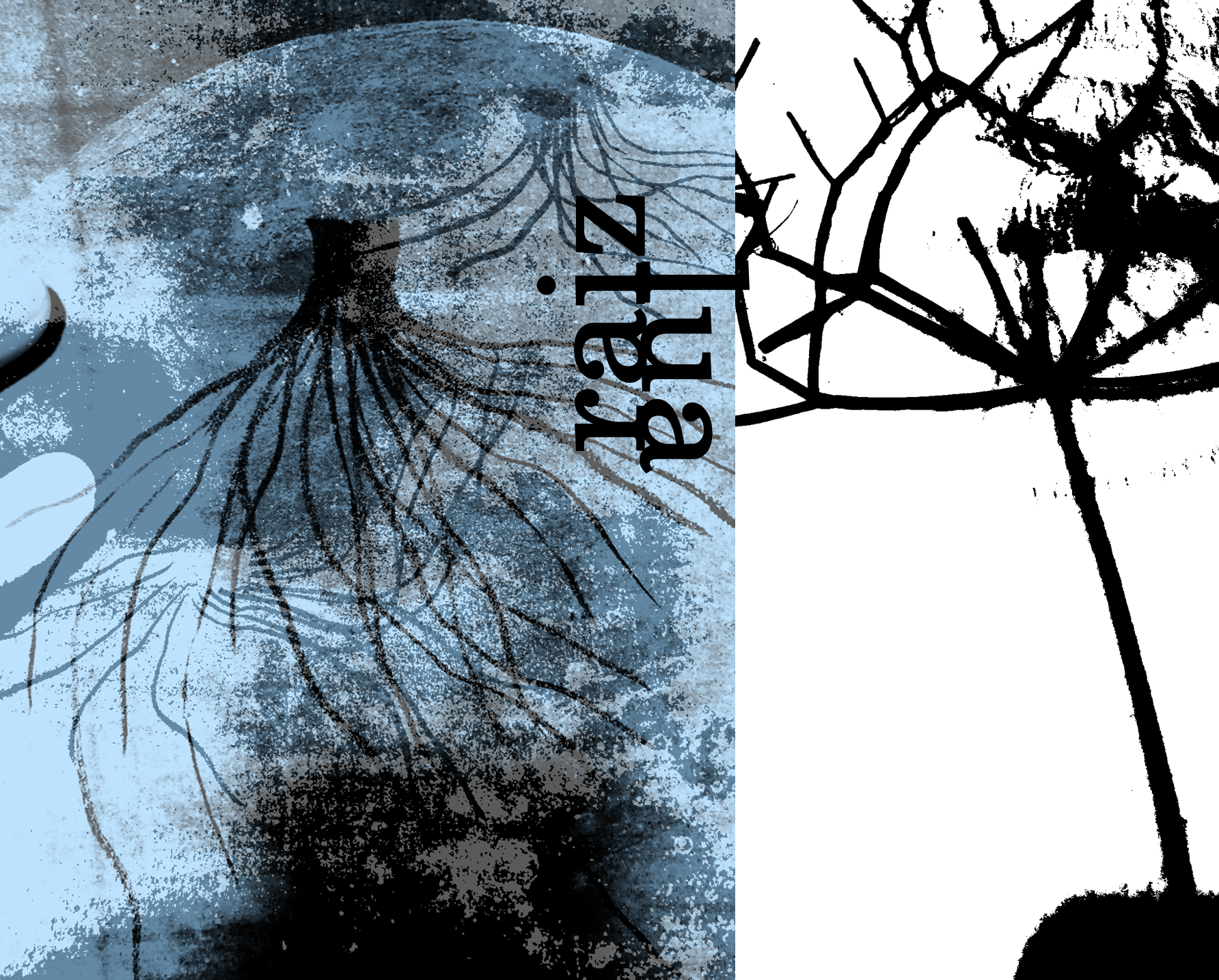 Da esquerda para a direita (Poemas Visuais): lua-raiz – Lia Krucken; não há hiato – Rogério Amorim
