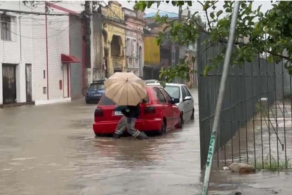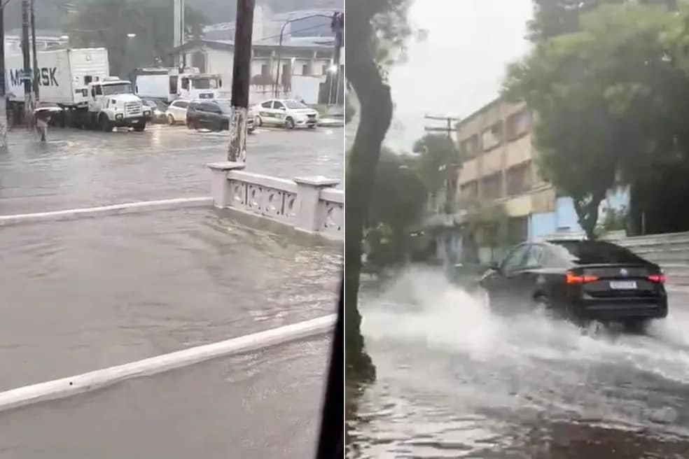As fortes chuvas que atingem a Baixada Santista, no litoral de São Paulo, nesta terça-feira (4), provocam transtornos e estragos nas cidades da região, principalmente em Santos (SP), onde a água deixou moradores ilhados e os morros em estado de atenção. Imagens obtidas pela reportagem mostram diversos pontos de alagamentos.