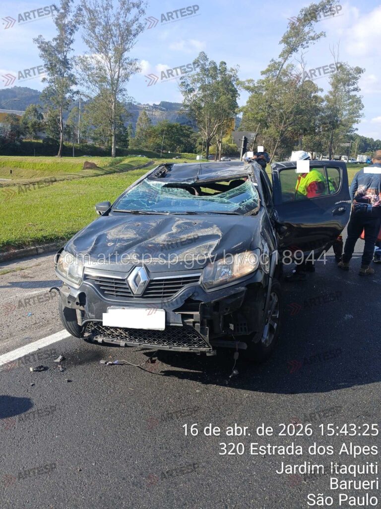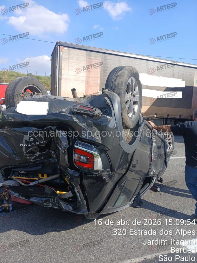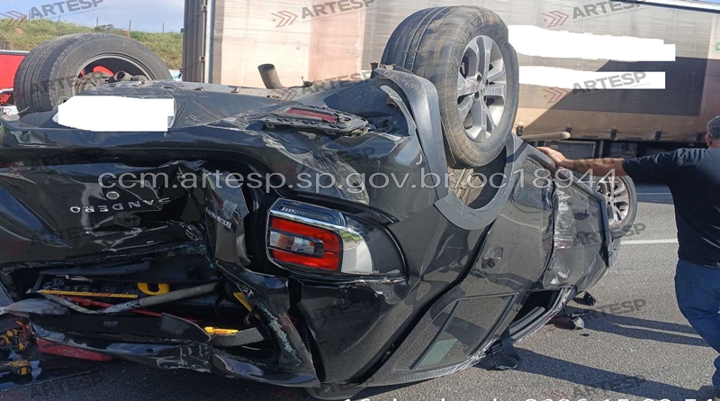 Na sequência, o automóvel capotou e ficou sobre a faixa 03 de rolamento, o veículo ficou com com as quatro rodas pra cima, e apesar da gravidade , as informações são que no acidente não houve feridos, as circunstâncias do acidente serão apuradas.