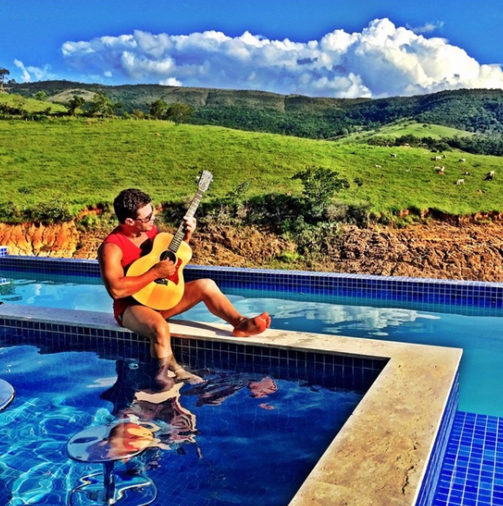eduardo Costa e a casa em Capitólio — Foto: Reprodução