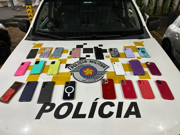 Durante a vistoria, os policiais encontraram 25 celulares escondidos no carro. Eles foram furtados durante evento de música realizado no shopping da cidade, que teve como atração principal a dupla sertaneja Henrique e Juliano.