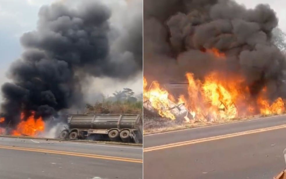 O motorista de uma caminhonete morreu na quinta-feira, 3 de outubro, depois de bater de frente com um caminhão, que ficou em chamas, na Rodovia Fábio Talarico (SP-345), na região de Franca (SP).