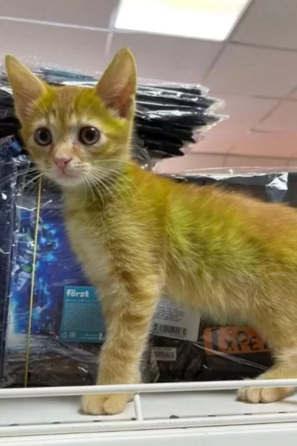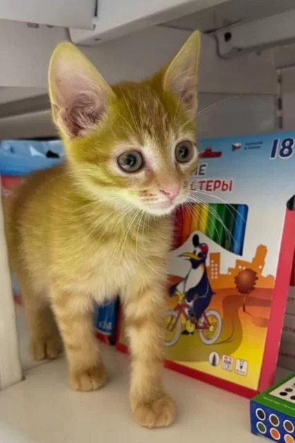 Um lojista da cidade de Grodno, na Biolorrússia, adotou um gato com um problema genético que deixou a cor do pelo com um tom verde. Sergey Viktorovich se refere ao felino como “um milagre da natureza” devido à tonalidade do bichano, que o encantou desde o dia do encontro.