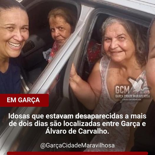 Idosas que estavam desaparecidas há mais de dois dias são localizadas entre Garça e Álvaro de Carvalho
