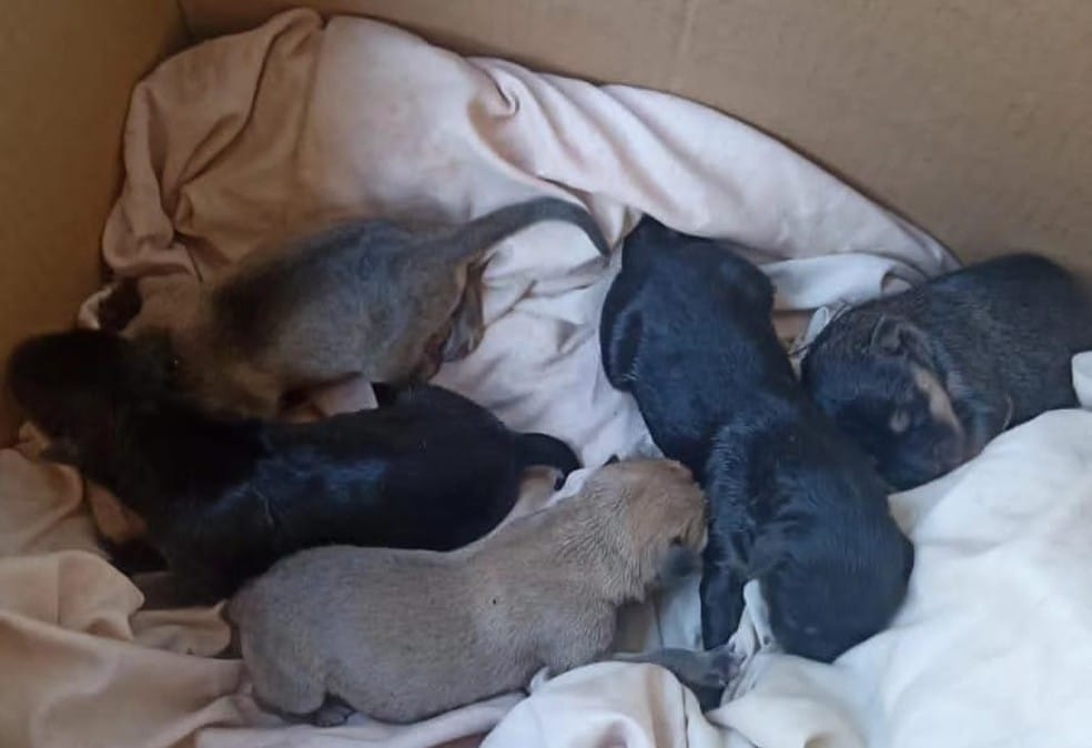 Cinco filhotes de cachorro foram resgatados por uma ONG após serem encontrados abandonados dentro de um saco de lixo no bairro Vale San Fernando, em Itapetininga – SP, na manhã de terça-feira, 11 de junho.