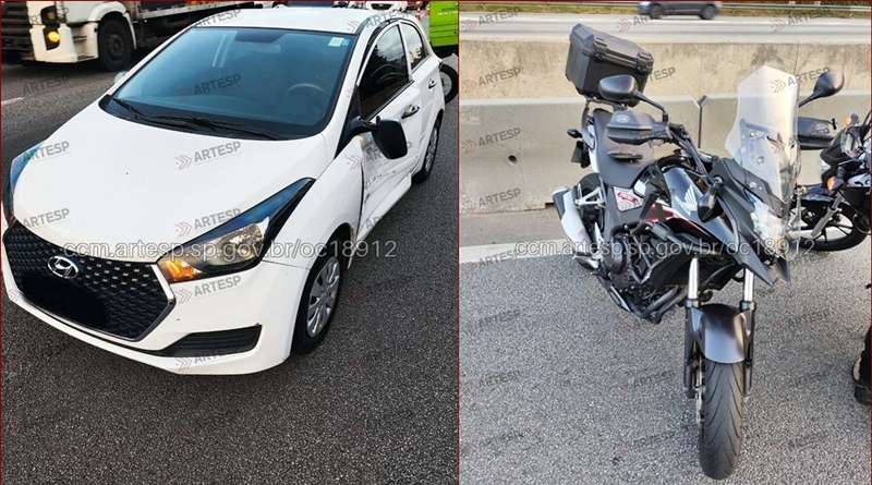 Os veículos envolvidos no acidente, uma moto Honda Nc500 e um Automóvel Hyundai Hb20