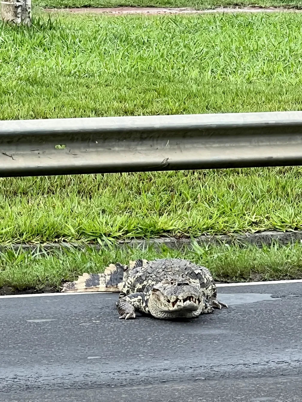 Um jacaré atravessou a Rodovia Geraldo de Barros (SP-304) na manhã deste domingo (8). A situação ocorreu em Águas de São Pedro (SP), na região de Piracicaba (SP), e exigiu que a polícia controlasse o trânsito por cerca de 20 minutos.
