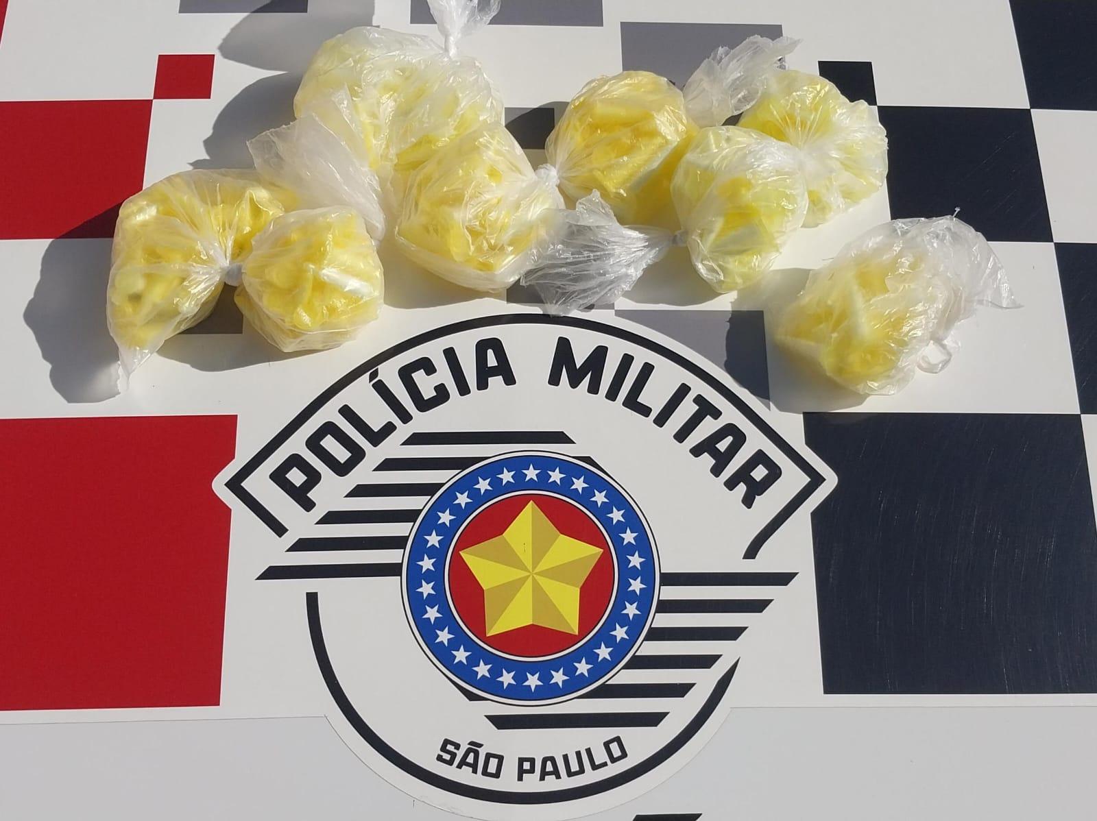 Na quarta feira dia 12 de junho a equipe da polícia militar estava em patrulhamento preventivo ostensivo pelo bairro padre augusto Sani, onde na av. prefeito. dr. Alfeu fabris, visualizamos algumas pessoas na esquina da rua josé prado a. Pacheco, no momento foi possível visualizar que um deles estava passando um objeto de cor amarela para outra pessoa e ao notar a presença dos policiais de imediato jogou o objeto ao solo, sendo que ambos empreenderam fuga a pé, contudo a equipe conseguiu deter um deles sendo que os demais tomaram rumo ignorado.