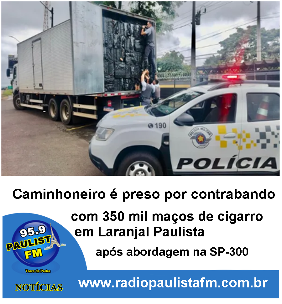 Um caminhoneiro foi preso na manhã de domingo (22) após ser flagrado transportando cerca de 350 mil maços de cigarro do Paraguai na Rodovia Marechal Rondon (SP-300) em Laranjal Paulista (SP). Carga não tinha nota fiscal.