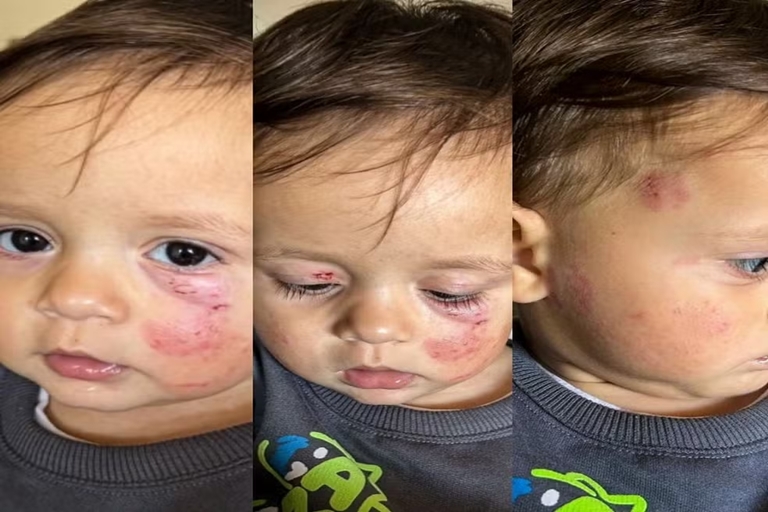 Uma mãe encontrou o próprio bebê de 1 ano e 2 meses com hematomas por todo o rosto ao buscá-lo em uma creche de Criciúma, no Sul de Santa Catarina. Segundo Marina Faraco, que denunciou o caso nas redes sociais, o filho foi atacado com pelo menos cinco mordidas (veja nas fotos acima). A Polícia Civil investiga o caso.