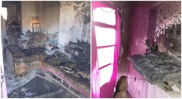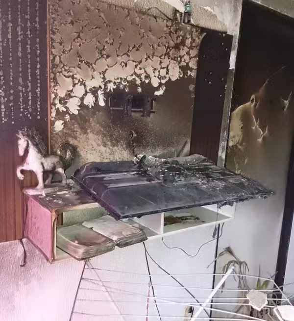 Após o fogo ser extinto por equipes do Corpo de Bombeiros, a família encontrou o apartamento completamente destruído, com paredes e teto carbonizados e móveis e eletrodomésticos consumidos pelas chamas.