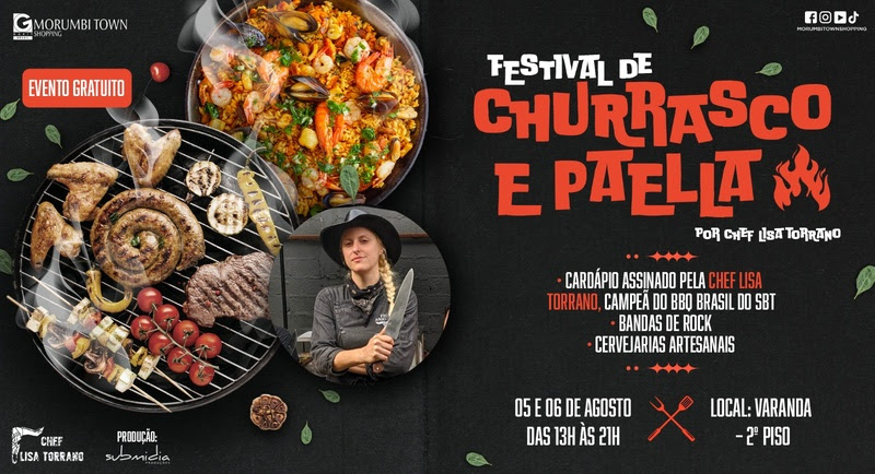 Morumbi Town Shopping promove Festival de Churrasco e Paella com cardápio assinado pela Chef Lisa Torrano, vencedora do BBQ Brasil