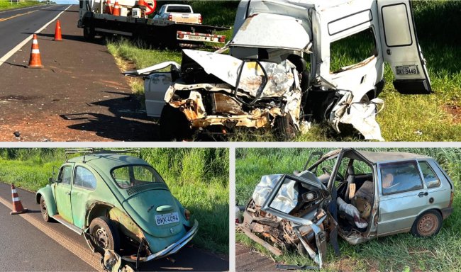 De acordo com o Corpo de Bombeiros, um dos carros saiu de uma estrada rural, invadiu a pista e colidiu frontalmente em um veículo. Na sequência, um terceiro carro foi atingido na traseira.