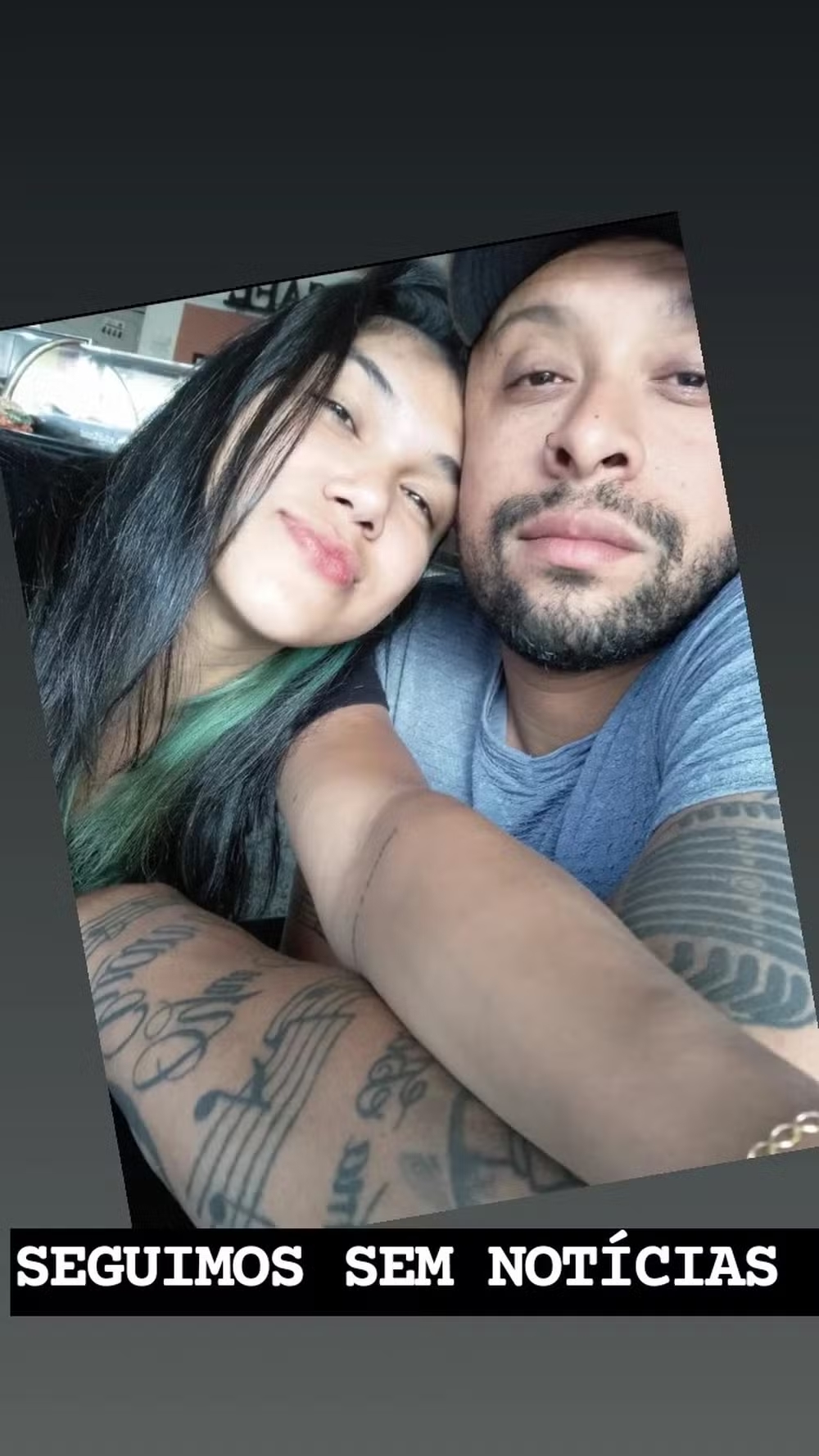 Na manhã desta quinta-feira (11), Adriele postou que o músico continua desaparecido. “Seguimos sem notícia”, limitou-se a dizer ela, na legenda de uma foto em que está ao lado dele.