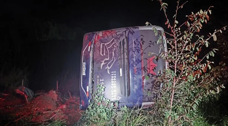 Ônibus com 48 multas tomba na MS-040, em Santa Rita do Pardo, e mata motorista reserva