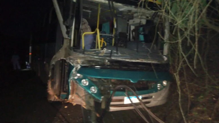 Ônibus de trabalhadores rurais colide em rodovia vicinal