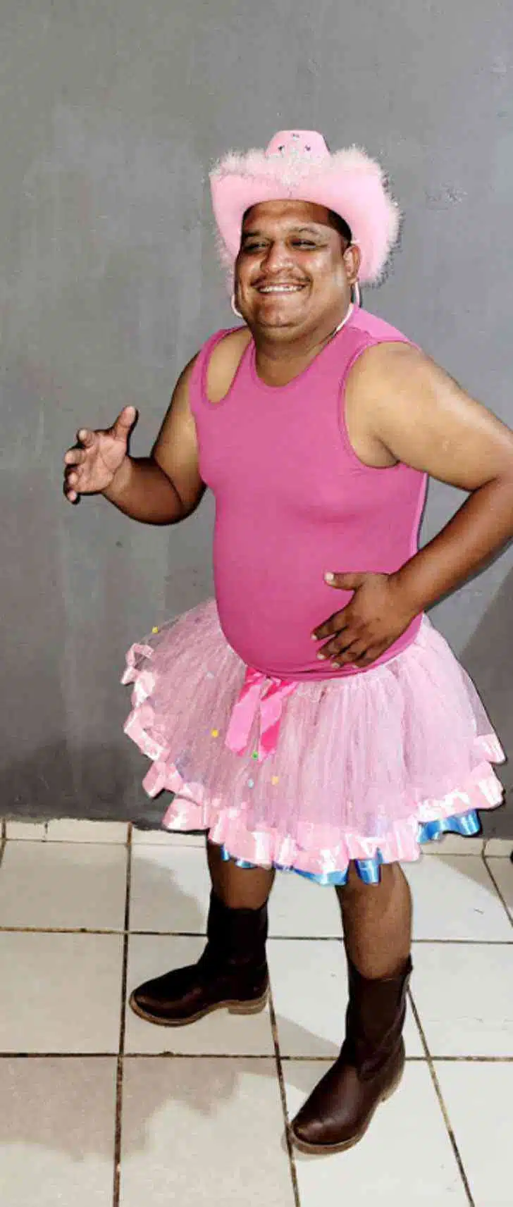“Minha filha me disse: ‘Papai, me leva na estreia da Barbie, mas você tem que vestir algo rosa ou vai ficar com vergonha’. Acho que quem vai passar vergonha vai ser ela”, escreveu Eleazar, acompanhado de fotos em que ele aparecia usando uma regata rosa e um tutu.