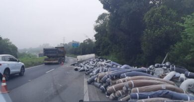 Carreta tomba na Régis Bittencourt, em Miracatu (SP), e causa interdição