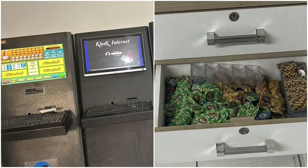Conforme registro policial, os aparelhos de jogos de azar foram localizados em 14 endereços diferentes após denúncia.