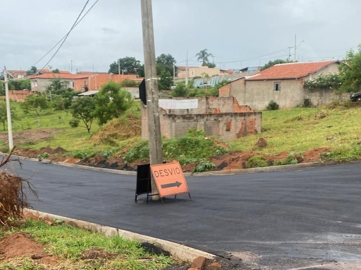 A Prefeitura executou obras de asfalto, guias e sarjetas e a via foi devidamente delineada. Ocorre que a CPFL não mudou o poste de lugar e ele se encontra hoje no meio da rua, oferecendo uma situação inusitada, além de perigosa.