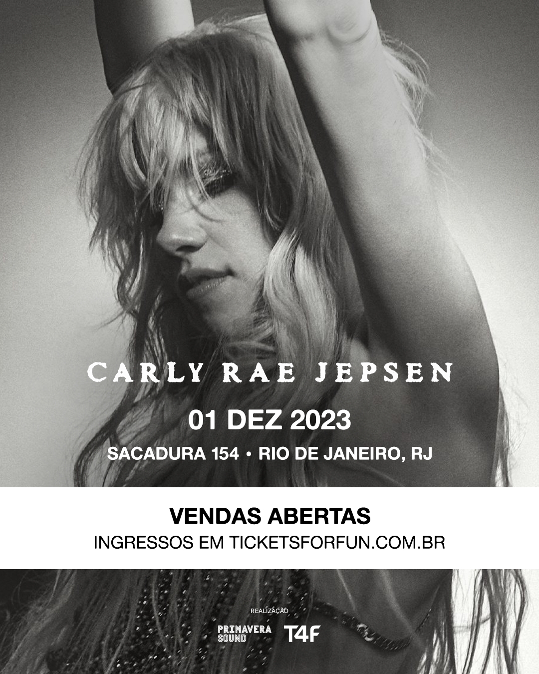 Marcado para os dias 2 e 3 de dezembro, no Autódromo de Interlagos, o Primavera Sound São Paulo – realizado pela TIME FOR FUN – leva o clima do evento para além das dependências do festival. Com a confirmação do sideshow de Carly Rae Jepsen, o Rio de Janeiro receberá um gostinho do evento na cidade. A cantora canadense, atração no palco do Primavera Sound São Paulo no dia 3 de dezembro, se apresenta na Sacadura 154, casa localizada na zona portuária da capital fluminense, no dia 1º de dezembro (sexta-feira). A venda de ingressos para o sideshow de Carly Rae Jepsen no Rio de Janeiro começa no dia 22 de agosto, ao meio-dia, pelo site (ticketsforfun.com.br – com taxa) ou na bilheteria oficial (R. Sacadura Cabral, 154 – Saúde, Rio de Janeiro – sem taxa).