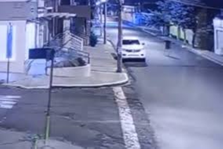 A Polícia Militar conseguiu uma imagem de câmera de segurança que mostra apenas um homem correndo e uma caminhonete em alta velocidade, mas não mostra o momento do acidente.