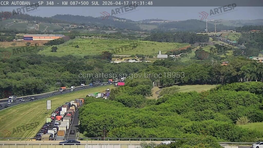 O registro da ocorrência 17/04/2026 14:58, uma colisão na Rodovia dos Bandeirantes (SP-348)