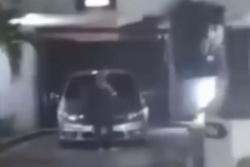 Na gravação, é possível ver a mulher parada em frente ao carro do marido, que estava deixando o estabelecimento, acompanhado por uma mulher.