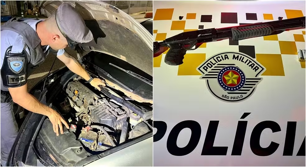 Sarapuí Polícia prende homens com arma de fogo escondida em motor de carro na SP-270