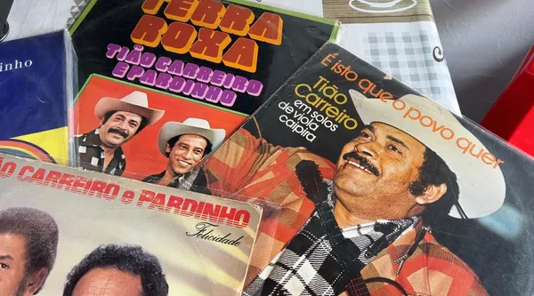 Discos da carreira de Tião Carreiro — Foto: Reprodução/TV TEM