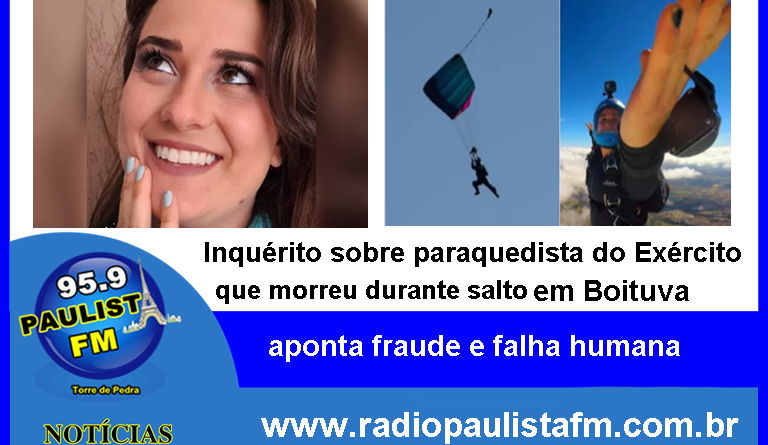 Interior de São Paulo 2 de fevereiro de 2023 Paulista FM SP Boituva Inquérito sobre paraquedista do Exército que morreu durante salto aponta fraude e falha humana A Polícia Civil de Boituva(SP) concluiu, nesta quinta-feira (2), a investigação sobre a paraquedista do Exército Brasileiro que morreu durante um salto no Share this... Facebook Pinterest Twitter Linkedin Read More