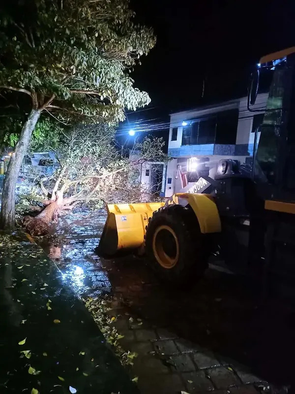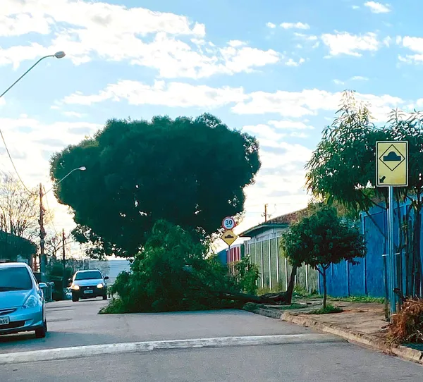 O vendaval também derrubou uma árvore na Avenida Santos Dumont, em Capão Bonito (SP), onde os ventos atingiram 35 km/h, segundo a prefeitura.